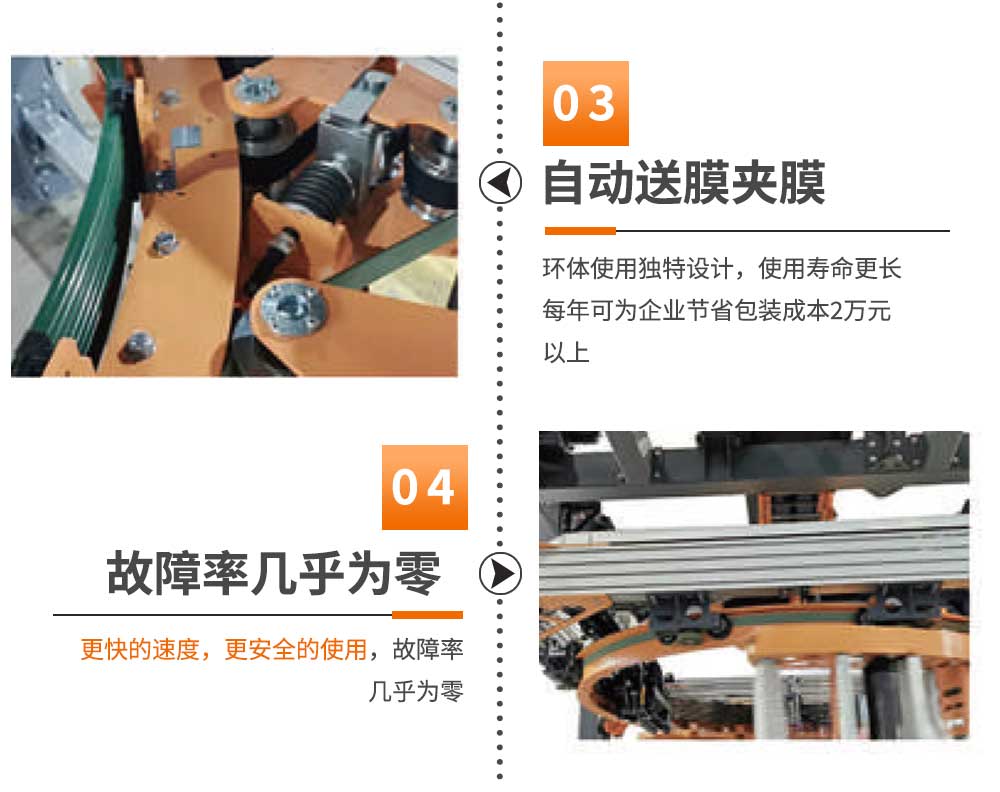 配有傳輸線 操作系統,高效簡單 多達36個包裝選項可供選擇 應用靈活,方便高效 光電開關檢測貨物高度 為企業節約包裝成本 包裝方式可任意選擇 允許薄膜防止薄膜松動 速度更快,使用更安全,故障率幾乎為零 環體采用獨特設計,使用壽命更長 自動送膜夾膜,自動焊膜,無膜尾 |